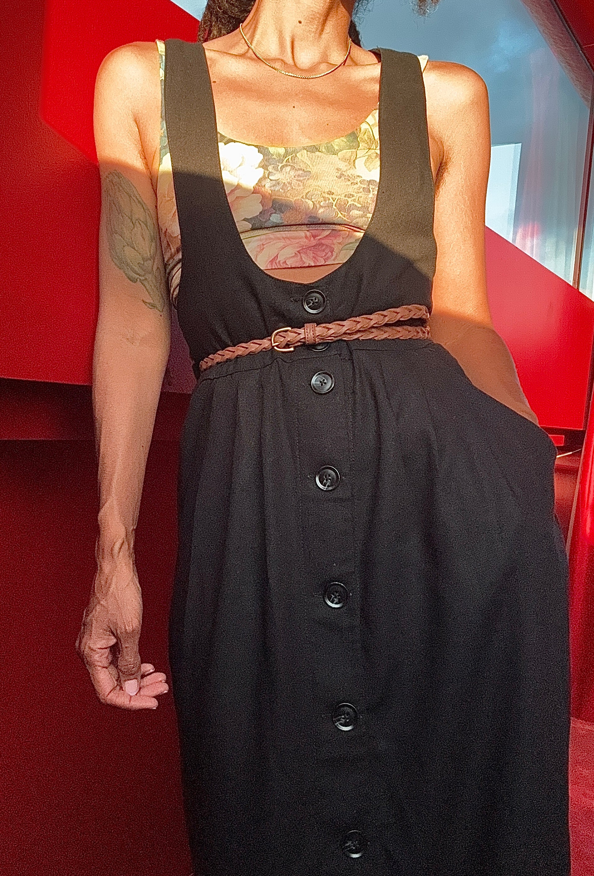 Perfect for layering in every season—pair it with a tee or turtleneck in cooler weather, or wear it over a bandeau or crop top for warmer days. Whether you’re heading to a gallery opening or a casual market stroll, this dress is ready to go where you do.