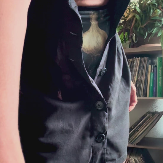 Designed with a low-cut front, it beautifully reveals the layer underneath—perfect for showing off your favorite bralette, tank, or fitted top. The relaxed silhouette flatters a range of body types, while the addition of deep side pockets makes it as practical as it is stylish.